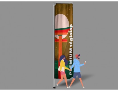 A formára konfekciónált nyomtatott zászló igény szerint cserélhető a szerkezet megtartásával.